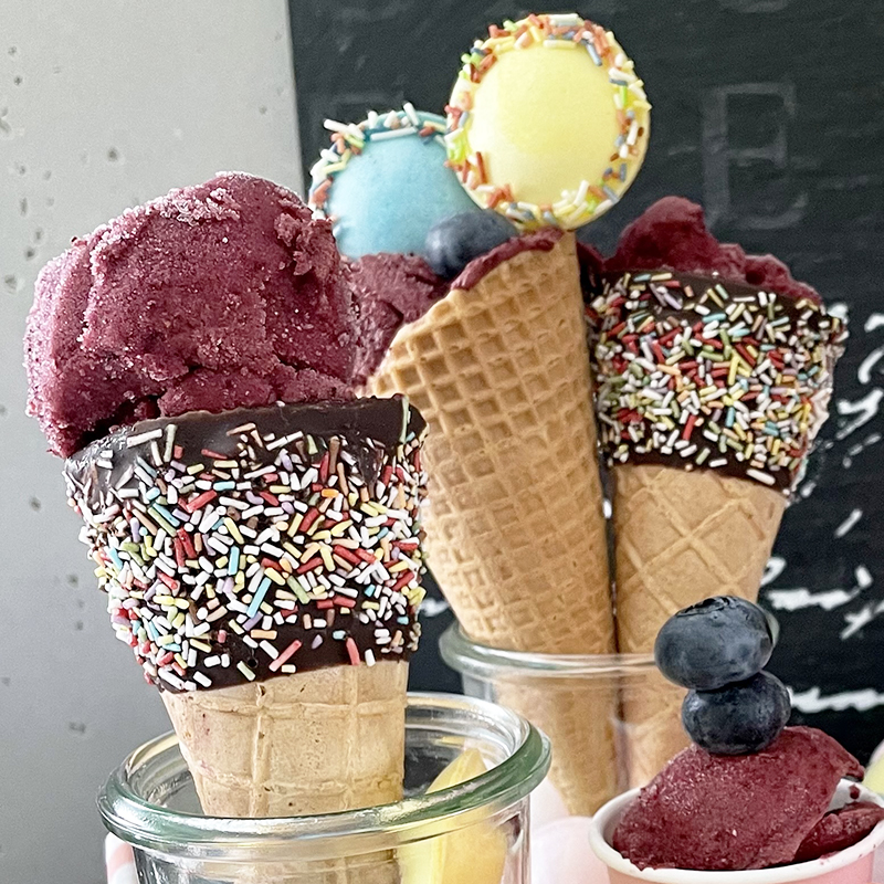 Tintelingen op de tong als een regen van vallende sterren: fruitijsvariant met sprankelende UFO’s en zoete bessen.